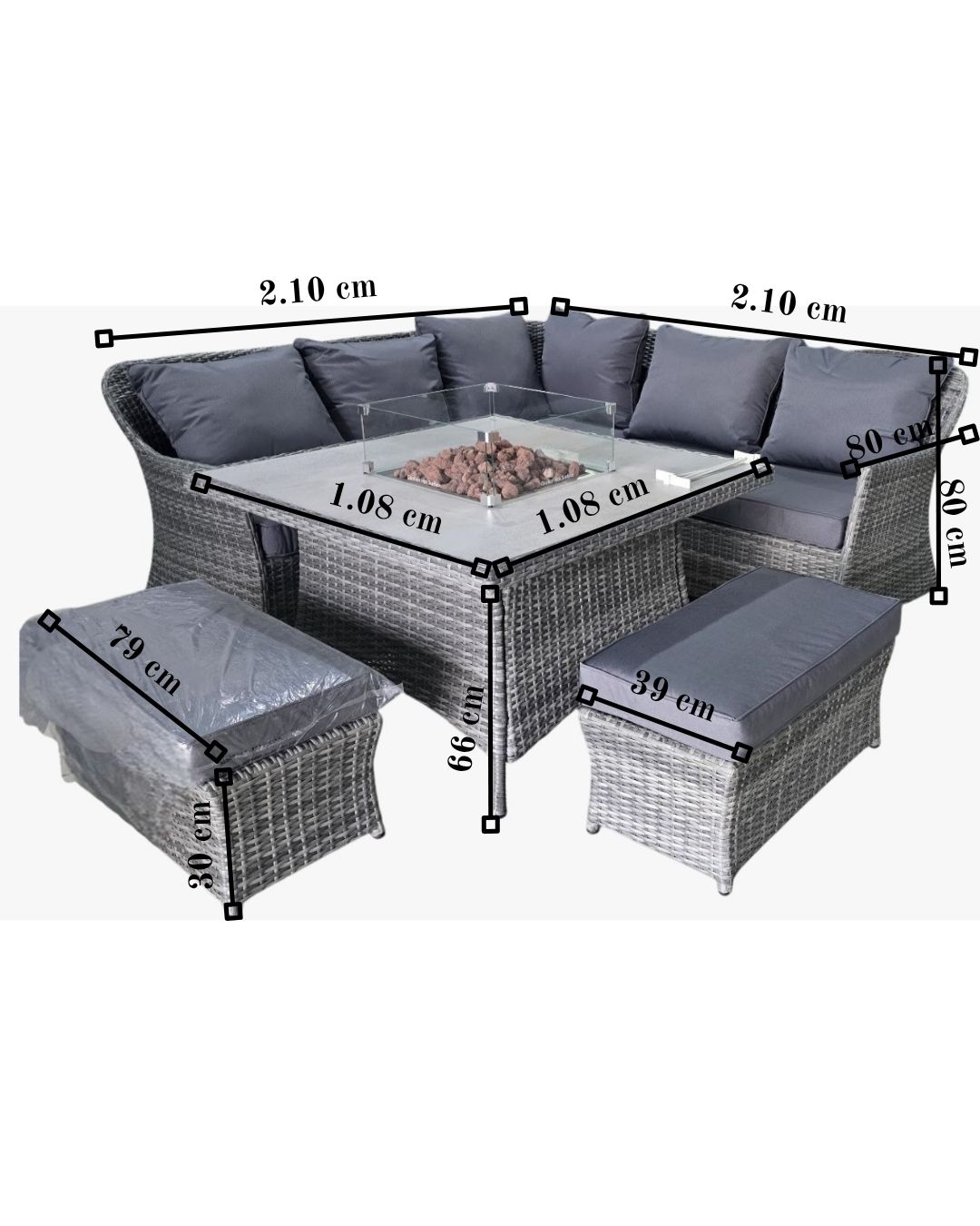 JUEGO DE TERRAZA CON FIRE PIT ALUMINIO